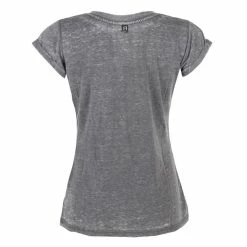 Stylish women’s slightly elastic t-shirt with large neckline and front print, by ROCK OFF.