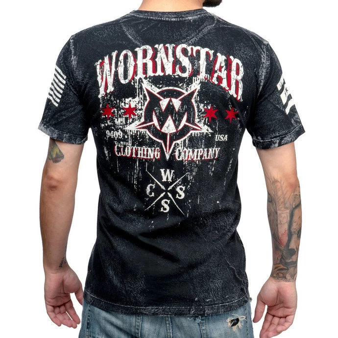 Men’s shirt with batik sided front and rear print. Batik can be on individual T-shirts from each slightly different. Made in USA Material: 100% cotton. Brand: WORNSTAR. Color: dark gray – batik. Approximate dimensions in cm (circumference is 2 x width)