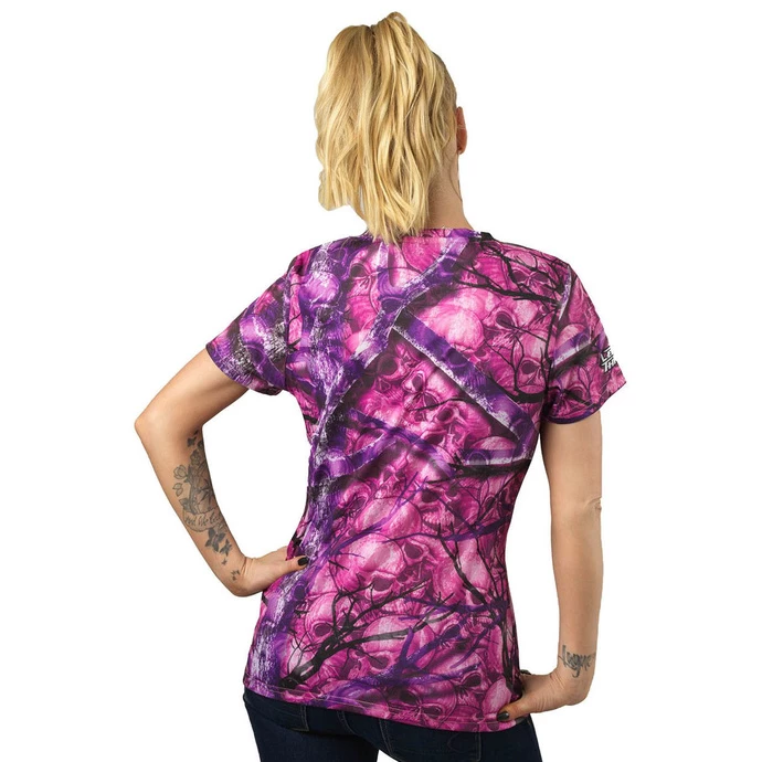 Stylish women’s slightly elastic t-shirt with front and back print, by LETHAL THREAT. Composition: 100% polyester. Approx. dimensions in centimeters (CIRC. is 2x width)
