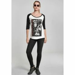 Stylish women’s elastic t-shirt with 3/4 sleeves and high quality front print. Composition: 100% cotton.Color: white, black sleeves. Approx. dimensions in centimeters (CIRC. is 2x width)