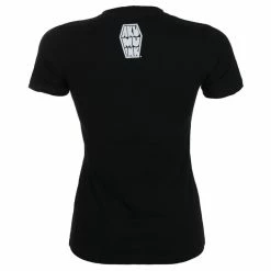 Stylish women’s slightly elastic T-shirt with high quality print. Composition: 100% cotton. Color: black. Brand: AKUMU INK. Approx. dimensions in centimeters (CIRC. is 2x width)