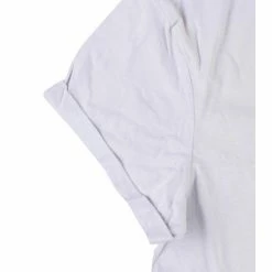 The T-shirt is frayed at the ends of the sleeve, bottom hem and around the neck – see photo.