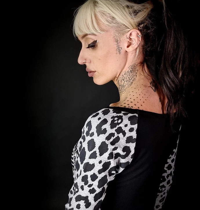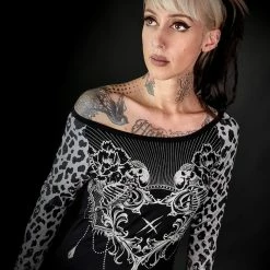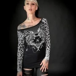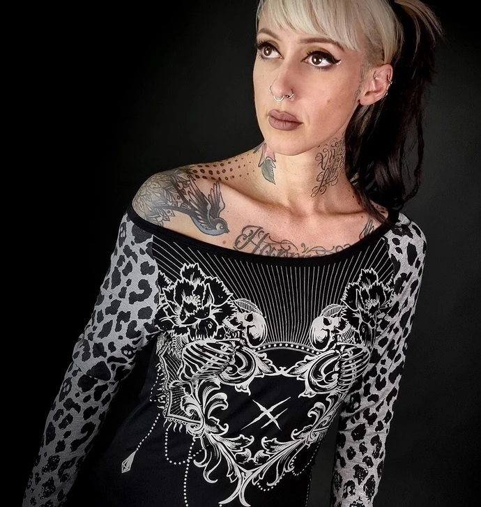 Stylish women’s t-shirt with long sleeves and large neckline.